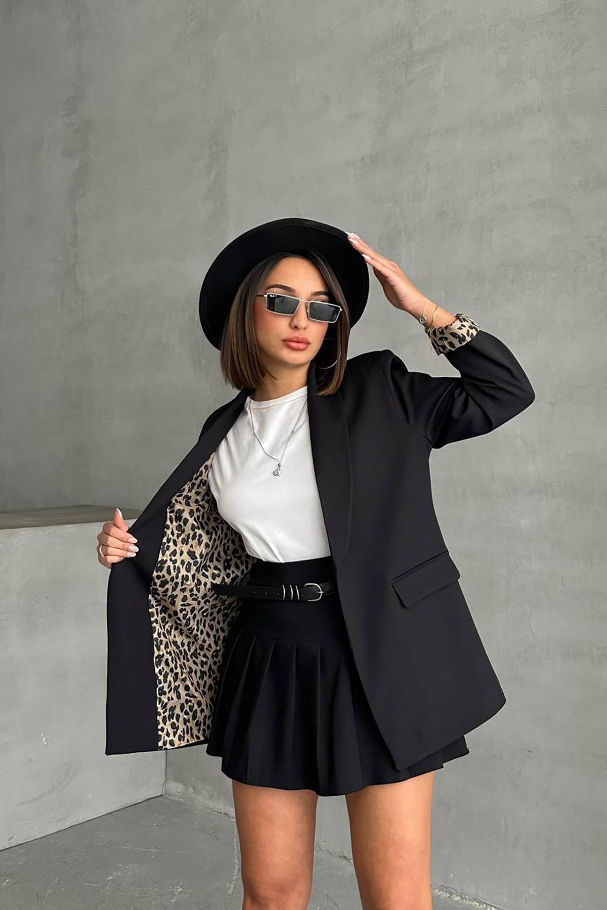 Ürün Adı: Dipmoda kadın astarlı içi leopar desenli blazer ceket DPNBG071 ÖZELLİKLER: