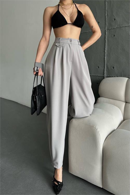 Ürün Adı: Dipmoda kadın yüksek bel düğme detaylı pantolon DPNBG008