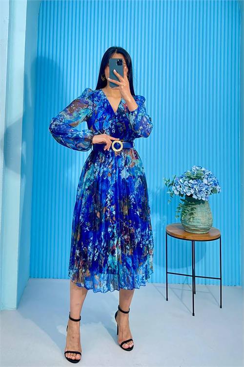 Ürün Adı:Dipmoda kadın kemerli çiçek desenli şifon elbise DPMY3286 ÖZELLİKLER: