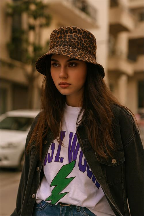 Dipmoda kadın leopar desenli balıkçı şapka DPAKS019