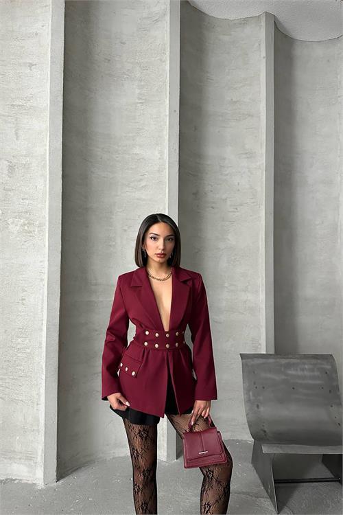 Dipmoda kadın tasarım çıtçıt detaylı blazer ceket DPG079