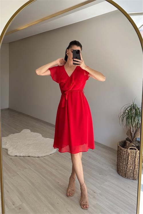 ÜRÜN ADI:Dipmoda kadın v yaka kuşaklı mini şifon elbise NM007