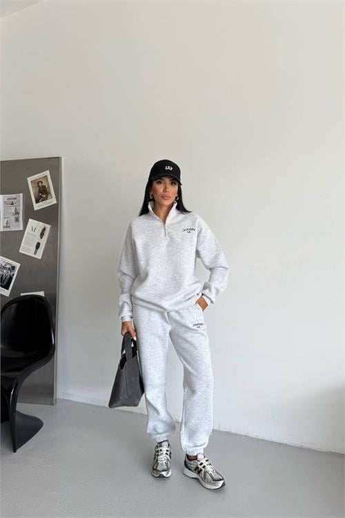 Spor şıklığını konforla buluşturan bu eşofman takımı, günlük hayatta ve hafta sonu kombinlerinde ideal bir seçimdir. Rahat kalıbı, fermuarlı üst detayı ve lastikli paça alt tasarımı ile hem konforlu hem de trend bir görünüm sunar.  baskısı, sportif tarza modern bir dokunuş katmaktadır. Spor ayakkabılarla kolayca kombinlenebilir, evde, sporda veya şehir hayatında şık bir alternatif oluşturur.